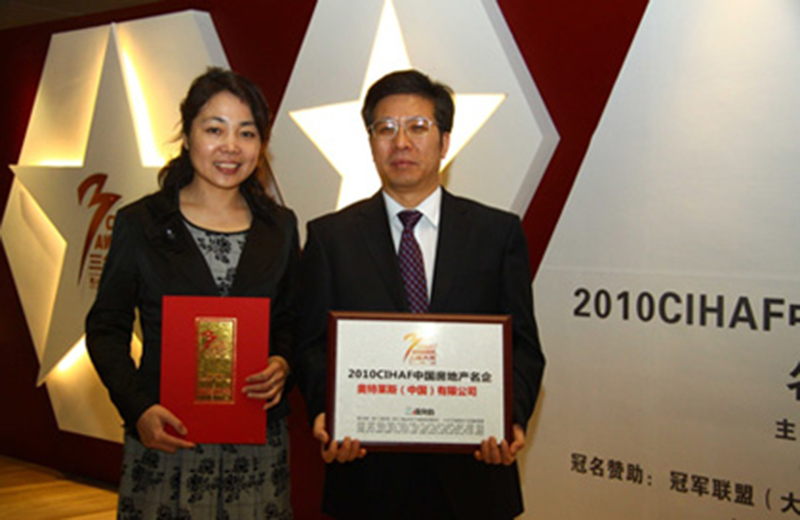 2010年12月11日,在深圳保利劇院隆重舉行的2010年中國(guó)房地產(chǎn)“名人、名企、名盤”大獎(jiǎng)評(píng)選中,奧特萊斯投資管理有限公司榮登“2010CIHAF中國(guó)房地產(chǎn)名企”的領(lǐng)獎(jiǎng)臺(tái),成為全國(guó)獲此殊榮的25家“優(yōu)秀房地產(chǎn)名企”之一。