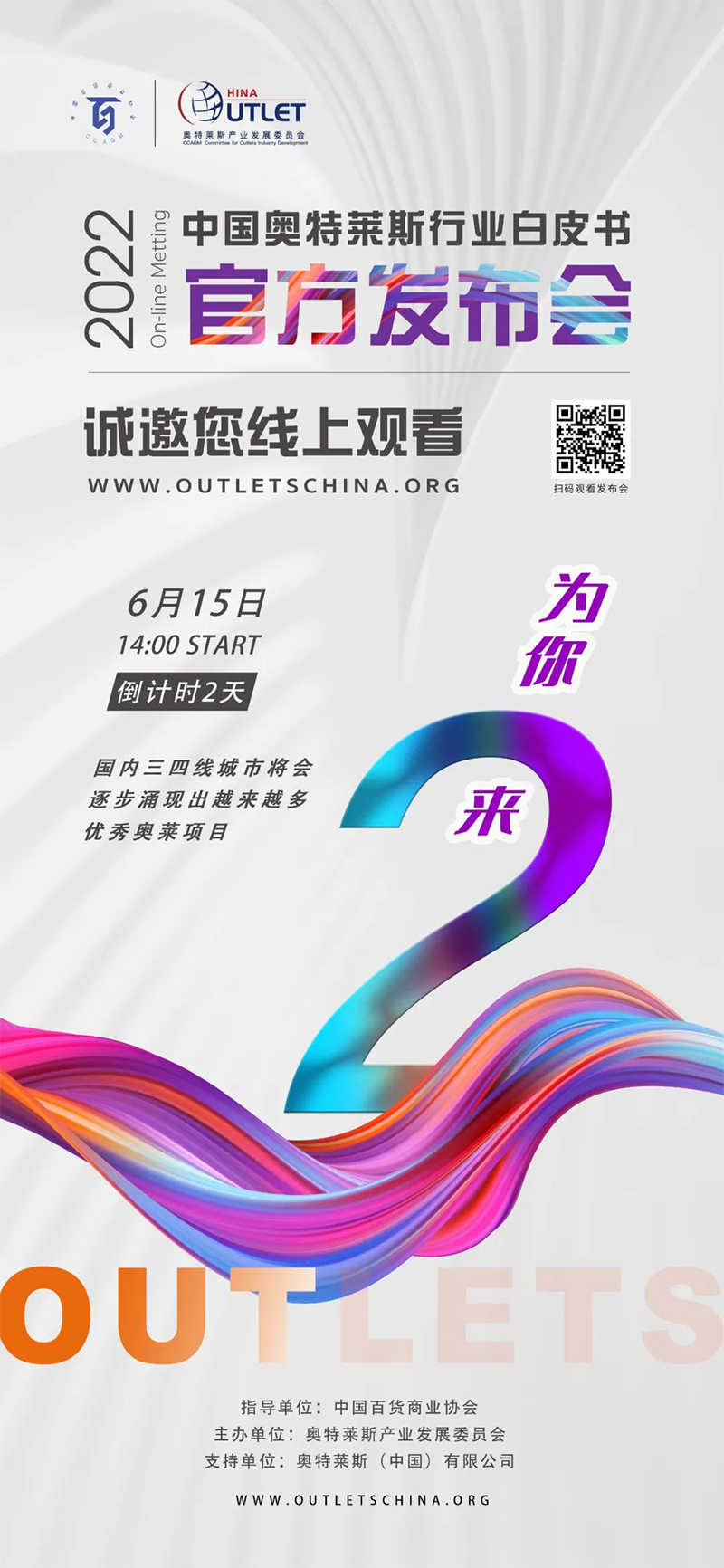 2022年6月15日14:00,《2022年中國奧特萊斯行業(yè)白皮書》線上發(fā)布會即將正式開始,本次發(fā)布會,將對國內(nèi)零售市場及奧萊產(chǎn)業(yè)引入中國20年發(fā)展的經(jīng)驗及機(jī)遇做出全新解讀。