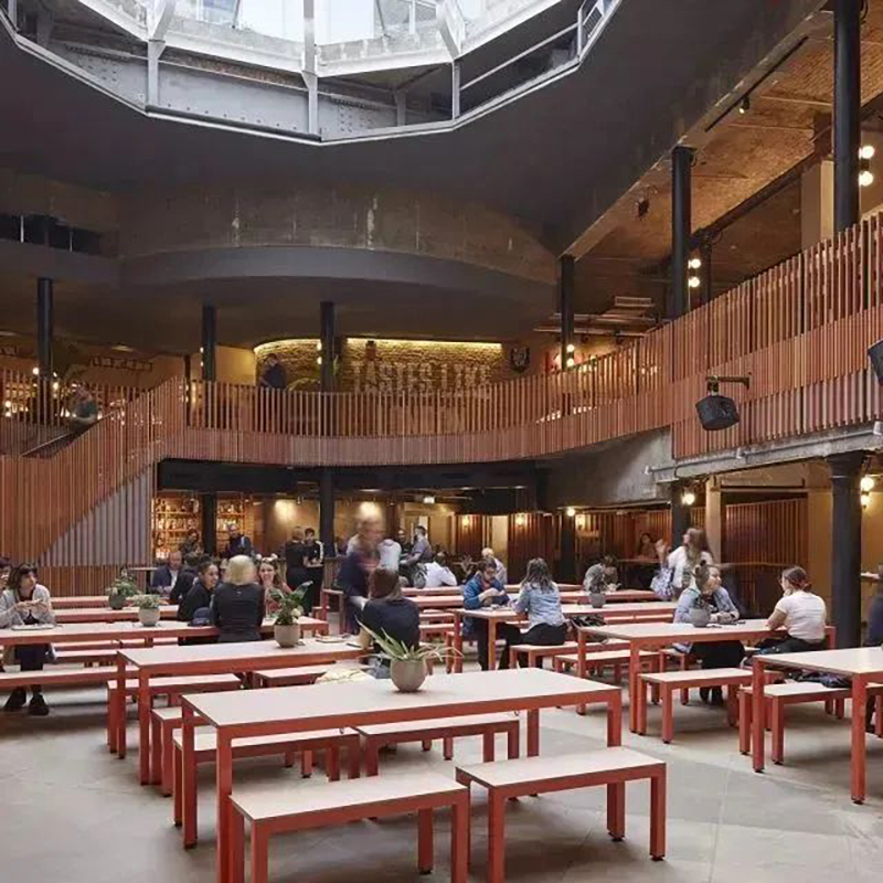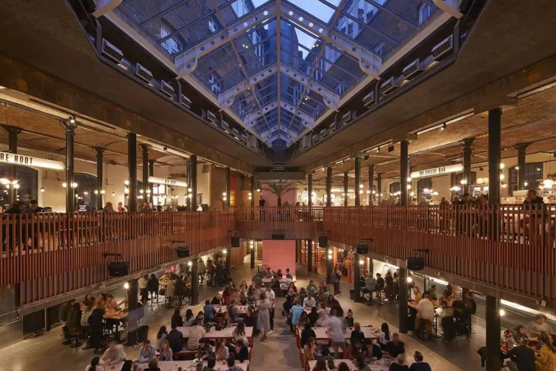 在曾經(jīng)用作儲(chǔ)存黃瓜和香蕉的Thomas Neal倉(cāng)庫(kù)打造24h營(yíng)業(yè)的Seven Dials美食市集。將整個(gè)市集劃分為倫敦專業(yè)生產(chǎn)商的室內(nèi)生產(chǎn)線的「黃瓜巷」和坐擁一系列著名街頭食品商鋪和餐廳的「香蕉倉(cāng)庫(kù)」,給古老的倉(cāng)庫(kù)賦予了新的生機(jī)。