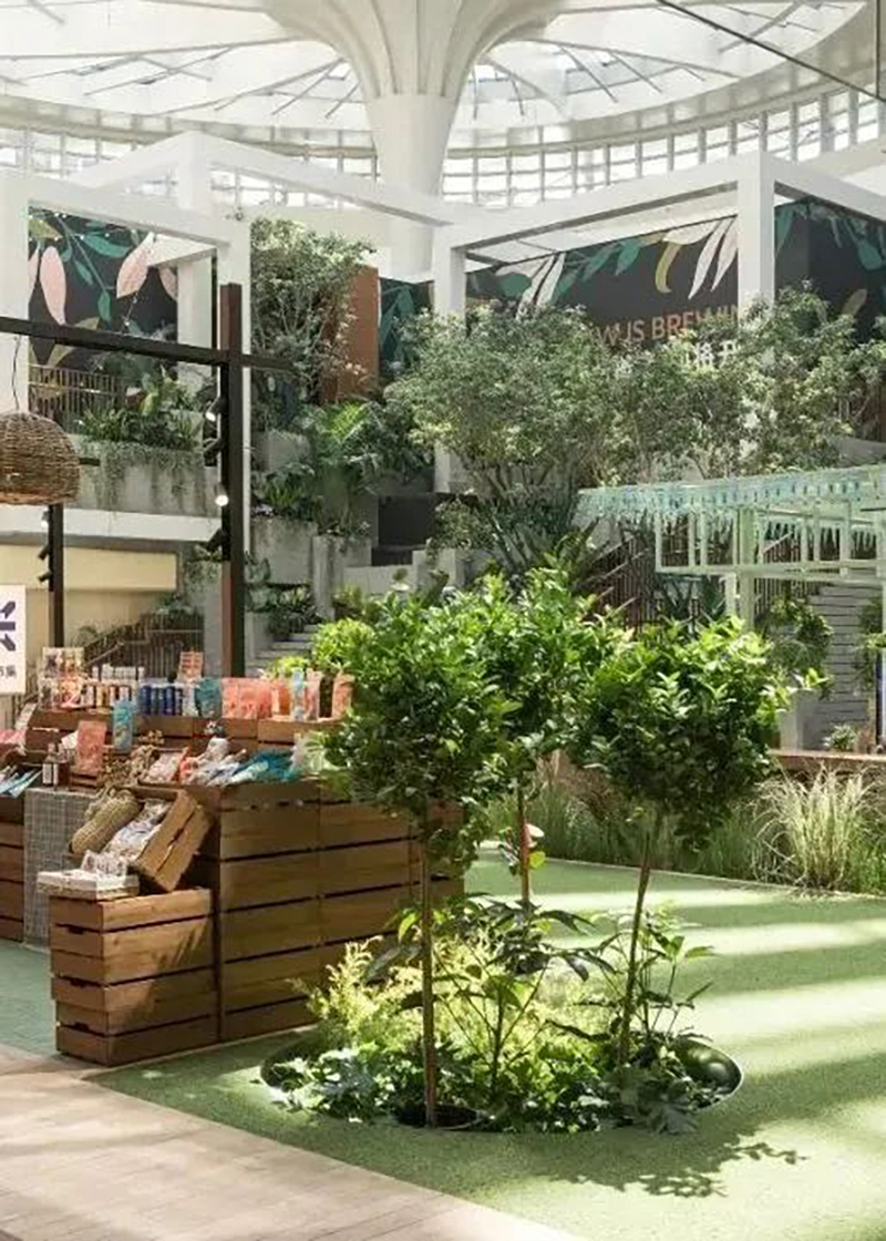 在購(gòu)物中心內(nèi)打造市集,將顛覆傳統(tǒng)餐飲模式,從“吃”的需求引入社交屬性,喚醒人們對(duì)自然和食物本源的集體記憶。瑞虹新城太陽(yáng)宮FOODIE SOCIAL 2.0南里食集坐擁25米挑高的5000㎡空間,目之所及皆有光與綠植,猶如一個(gè)有戶外感的美食空中村落。