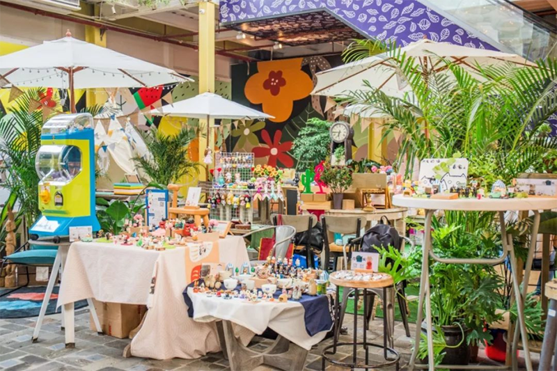 烏瑪市集的商鋪沒(méi)有千篇一律,也不需要整齊劃一,但每個(gè)小店都發(fā)揮其個(gè)性給消費(fèi)者帶來(lái)別樣驚喜?!该朗承〕燥L(fēng)情街」的商鋪有的是夏日清新風(fēng),有的則是硬朗工業(yè)風(fēng),還有的是傳統(tǒng)中式風(fēng)等,利用多樣多端的風(fēng)格打造空間上“一步一打卡”的特色,增添游購(gòu)樂(lè)趣。