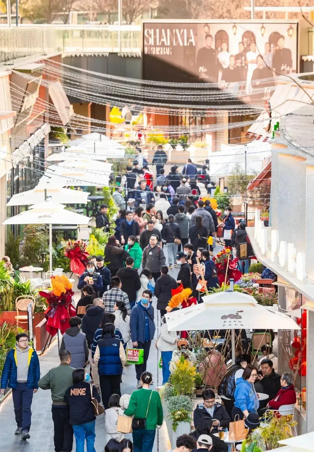 在“山下”,游客們仿佛置身于一場盛大的派對之中,無論是漫步于獅子山下,還是沉浸在社交互動之中,都能感受到那份精致的人間煙火氣。開業(yè)慶典上,萌寵大賽、現(xiàn)場樂隊(duì)演奏及煙花秀等精彩活動輪番上演,為消費(fèi)者帶來了一場視聽盛宴,吸引了眾多熱愛生活、追求社交的年輕人。此外,項(xiàng)目還貼心地在凹嵌的“石壁”處設(shè)置了休息區(qū),為游逛的客人提供了一個(gè)靜謐的休憩與社交空間,讓人仿佛置身于世外桃源,享受片刻的寧靜與放松。