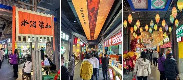 宋朝食間是以大宋文化為主題的街區(qū),還原宋朝文化、藝術(shù)、生活場景,加入水泊梁山和水滸英雄好漢場景元素,打造了沉浸式宋風(fēng)實(shí)景生活餐飲主題街區(qū)。