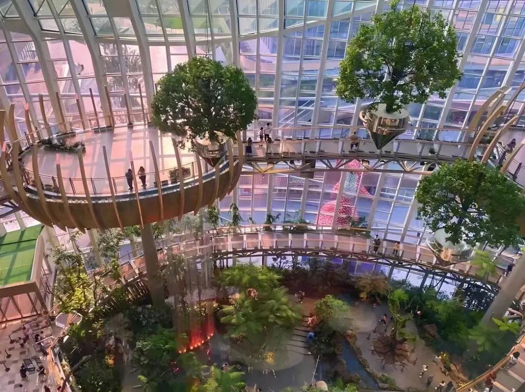 購(gòu)物中心引入綠色自然的戶外空間和各類(lèi)健康運(yùn)動(dòng)的活動(dòng),不失為一種常見(jiàn)策略。如重慶光環(huán)購(gòu)物公園通過(guò)生態(tài)綠植、以綠色填充商業(yè)公共空間,給年輕人營(yíng)造一種仿若森林的美感,混合著泥土氣息的自然美感撲面而來(lái),呈現(xiàn)一處城市生態(tài)綠洲。