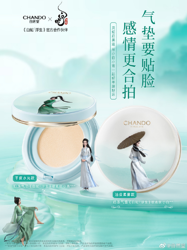 在2024年,《白蛇3:浮生》不僅打破了七夕檔期動(dòng)畫(huà)電影的累計(jì)票房紀(jì)錄,而且白蛇IP還借此機(jī)會(huì)與金石盟珠寶、北京一卡通、YHD羊很大、芬蘭珠寶FEO等眾多品牌合作推出聯(lián)名產(chǎn)品。隨著蛇年?duì)I銷(xiāo)活動(dòng)的啟動(dòng),《白蛇3:浮生》迎來(lái)了聯(lián)名產(chǎn)品的“第二春”。自然堂與《白蛇3:浮生》的聯(lián)名款氣墊推出后,緊接著“自然堂蛇年生肖禮盒”也相繼問(wèn)世。
