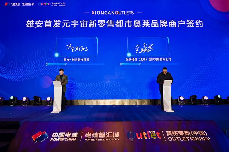 活動現場,中國電建地產公司黨委副書記、董事、總經理,中電建河北雄安建設發(fā)展有限公司黨委副書記、總經理李端代表電建智匯城,與奧特萊斯(中國)進行簽約,宣布雄安首家元宇宙主題新零售商業(yè)雄安·電建奧特萊斯落定并正式啟動招商。數十家國際一線奢侈品牌、國際潮牌、國際運動品牌強勢入駐,揭開了首批入駐雄安?電建奧特萊斯的國際大牌面紗,奏響了2023年雄安商業(yè)蓬勃發(fā)展最強音。